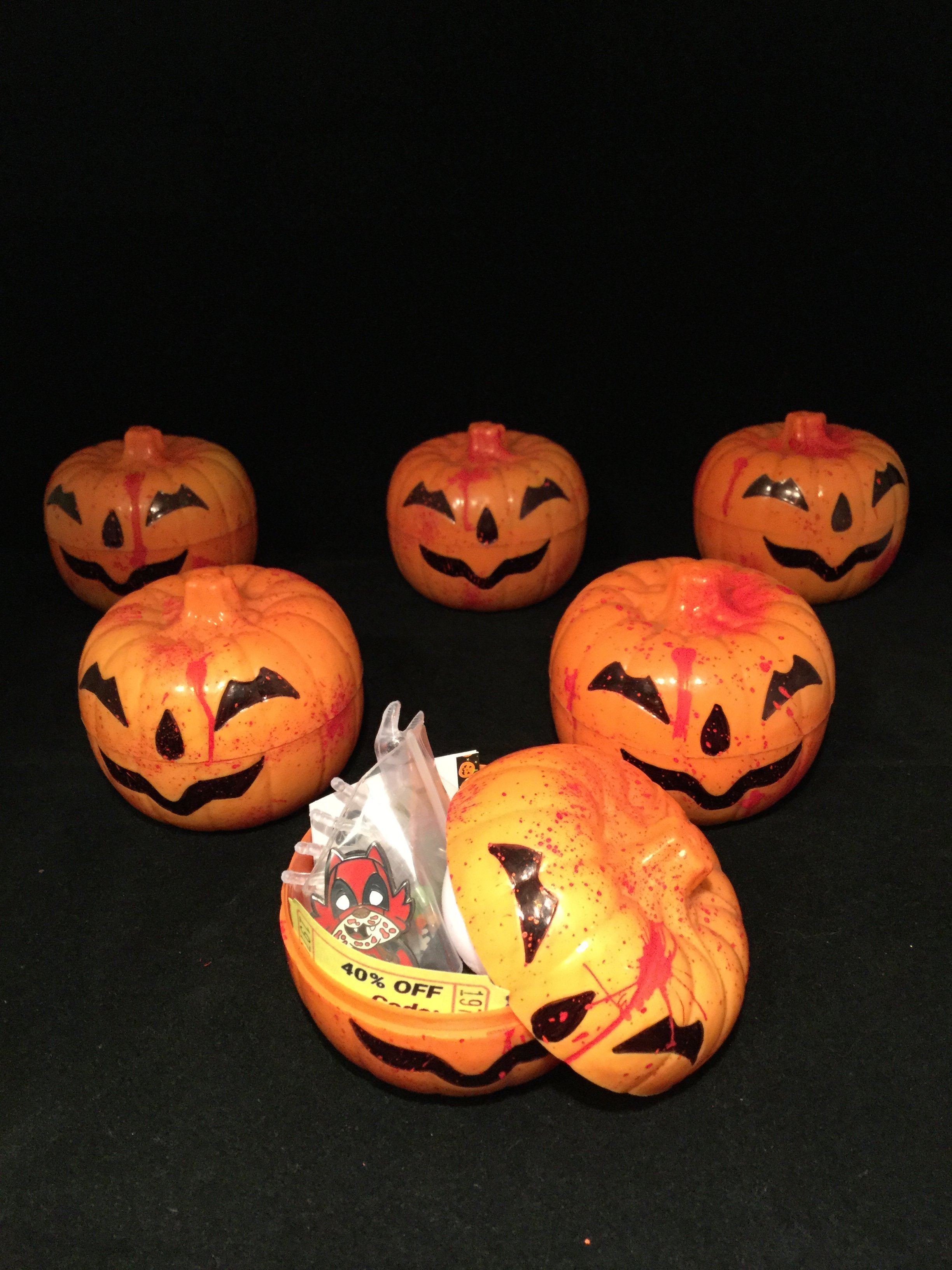 The Vintage Halloween mini pumpkins are anything but small. Each one has over $25 dollars of swag inside. Including 2 enamel pins per pumpkin guaranteed. As well as tons of other Awesome Halloween Swag.