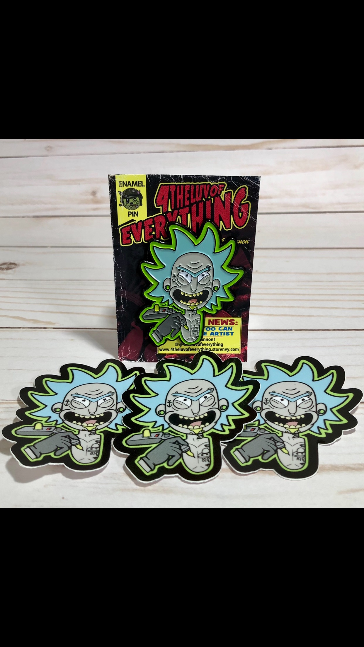 Save when you purchase our Tattoo Rick Combo pack Pin & Sticker